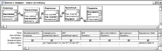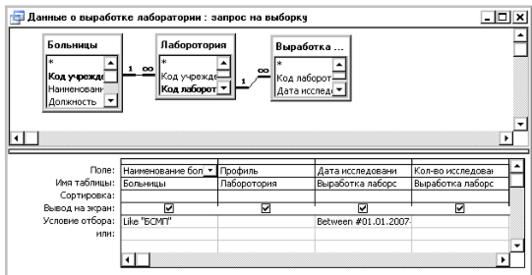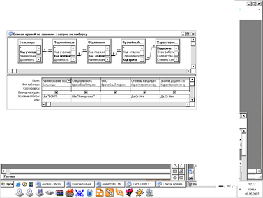 Запрос – объект БД, который служит для селекции и фильтрации набора данных, позволяет выбрать из большого количества информации только ту, которая соответствует определенному критерию отбора и нужна для решения конкретной задачи. MS Access дает большие возможности при проектировании запросов (включать не все поля, выбирать, сортировать записи, затрагивать данные из нескольких таблиц, выполнять вычисления, использовать запрос в качестве источника данных для отчетов, форм и других запросов, изменять данные в таблицах). Рекомендуется создавать запросы при помощи конструктора.