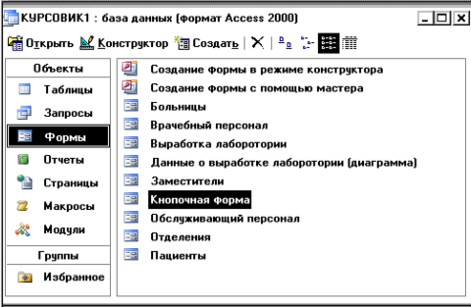 Все формы созданы с помощью конструктора и представляют собой: