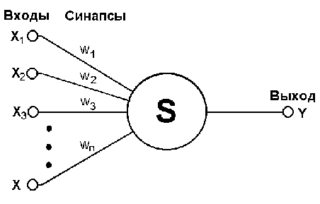 Нейрон обладает группой синапсов - однонаправленных входных связей, соединенных с выходами других нейронов. Каждый синапс характеризуется величиной синоптической связи или ее весом wi.