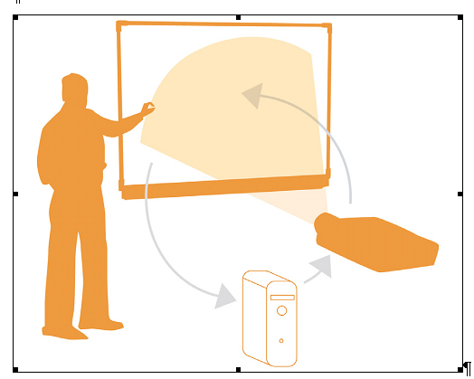 Интерактивную доску, как и мышь, можно назвать устройством ввода данных в компьютер. Когда вы прикасаетесь к рабочей поверхности интерактивной доски, она определяет координаты прикосновения по горизонтали и вертикали (x, y). Получив эти координаты, драйвер мыши компьютера перемещает указатель мыши в соответствующую точку на экране компьютера.