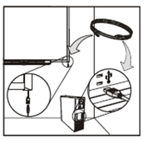1. Вставьте разъём USB-кабеля в гнездо встроенного USB-кабеля, который находится за нижним правым углом интерактивной доски.