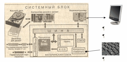 Изобразим изложенные сведения об устройстве компьютера на блок-схеме