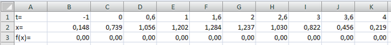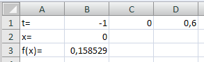 Щоб вирішити задачу необхідно заповнити таблицю. Задаємо значення t=[4,7]. Задаємо функцію f(x), у якій початкове значення х буде дорівнює "0".