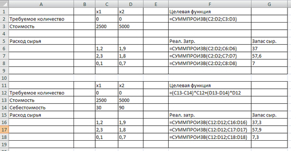 Для варіантів (27й 28) вирішити задачу з урахуванням собівартості (С) продукції рівної : С1 = 10*N, С2 = 30*N, де N -номер варіанта.