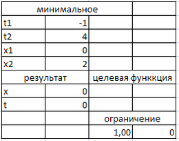 Для визначення максимуму й мінімуму функції необхідно заповнити таблицю з вихідними даними й розрахунковими формулами. Задаємо початкові значення x й y рівні "0"