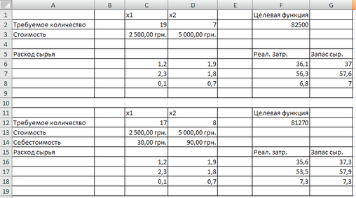 з урахуванням собівартості: x1 = 17 x2 = 8