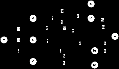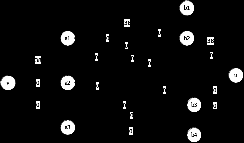 Рис. 16. Увеличение потока в сети. Конец алгоритма.