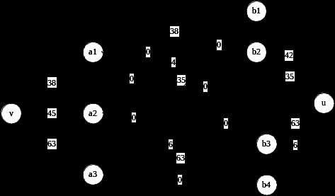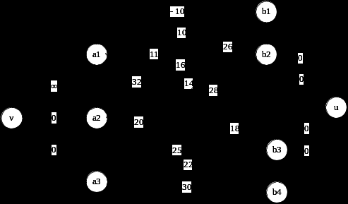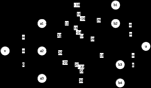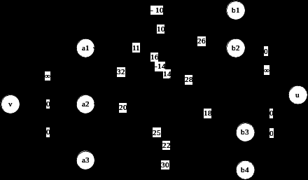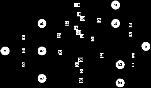 Каждой дуге переписываем стоимость дуги. Если е прямая, то длинна, равна стоимости пересылки, если е обратная, то ее длинна – это стоимость, но при отрицательном значении.