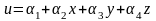Если для задания линейного закона изменения какой-либо величины в плоском треугольном элементе требовались три узловых значения, то в трехмерном случае необходимо задать четыре узловых значения. По аналогии с представлением (4.3) можно записать, например,