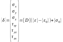 Начальные деформации, такие, как обусловленные тепловым расширением, можно записать обычным образом в виде шестикомпонентного вектора, имеющего, например, для изотропного теплового расширения простой вид: