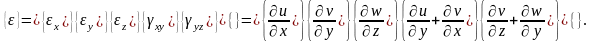 В трехмерном случае учитываются все шесть компонент деформации. Используя известные обозначения Тимошенко, запишем матрицу деформаций в виде