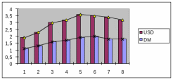| USD | 1,9 | 2,3 | 3 | 3,2 | 3,6 | 3,5 | 3,4 | 3,2 |