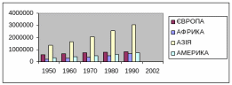 | Назва континенту чи країни | 1950 | 1960 | 1970 | 1980 | 1990 | 2002 |