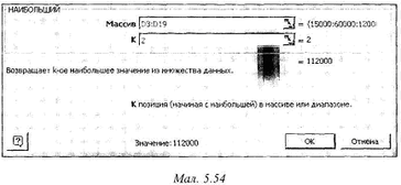 Під час використання функції НАЙБІЛЬШИЙ обов'язковими є два параметри: діапазон клітинок таблиці та номер позиції (починаючи з найбільшого) в цьому діапазоні, якому відповідає (мал.6)