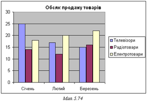 Завдання 6. До діаграми (мал. 22), створеної на основі таблиці 1.14, внести деякі зміни: