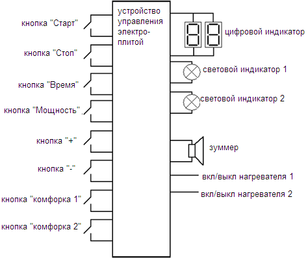 Общая модульная структура аппаратных средств устройства управления двухконфорочной электроплитой представлена на рисунке 2.1.
