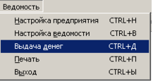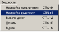 Запустить экранные формы можно с помощью команд меню «Ведомость» (рисунок 1).