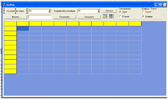 Для початку роботи, користувачу буде необхідно лише вказати розмір масиву, потім вибрати цифровий чи буквений спосіб заповнення масиву або вручну чи автоматично спосіб заповнення. Далі з’явиться повідомлення про даний пошук.