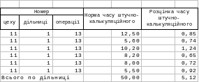 | Номер | Норма часу штучно-калькуляційного | Розцінка часу штучно-калькуляційного | ||