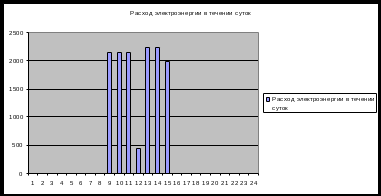 На графіку видно, що максимальне споживання електроенергії о 9 та о 15 годині за рахунок роботи телевізора. В інший період максимальне споживання о 12 та о 13 годині за рахунок роботи осцилографа.