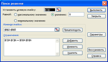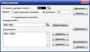 Вікно «Пошук рішення» необхідно заповнити наступним чином (рис.2.11):