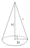 У конусі получили прямокутний трикутник АОВ, кут О = 90о, h – катет у прямокутному трикутнику. Для знаходження катетів обчислимо корінь із різниці гіпотенузи r та катета R.