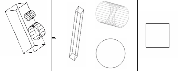 в виде каркасной модели, позволяющей видеть контуры примитивов, из которых составлены объекты;