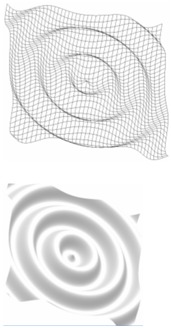 строится перебором координат x и y в пределах от -N до N и вычислением для каждой пары (x,y) значения z.