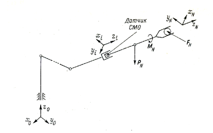 Рисунок 1 - Кинематический схема манипулятора с датчиком СМО