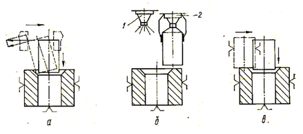 создание автономных систем поиска удовлетворительного взаимного расположения сопрягаемых деталей. В этом случае задача решается при использовании сборочных головок в составе ПР или РТК, осуществляющих взаимные направленные сканирующие движения поиска для элементов сборки. Для первого направления наиболее распространенные способы сборки представлены на рисунке 3. Также существуют способы сборки с использованием адаптивных систем, которые представлены на рисунке 2.