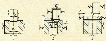 Рисунок 2 – Схемы сборки с использованием размерных цепей: а – с жестким базированием; б – с нежестким базированием (для объектов с фасками); в – с ловителями