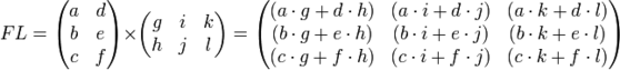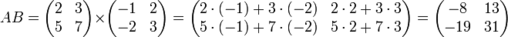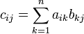 ) — есть операция вычисления матрицы C, элементы которой равны сумме произведений элементов в соответствующей строке первого множителя и столбце второго.