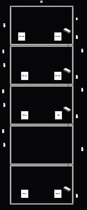 Горизонтальная и вертикальная разводка кабеля для всех отделов представлена на рисунке (2.14) и (2.15).