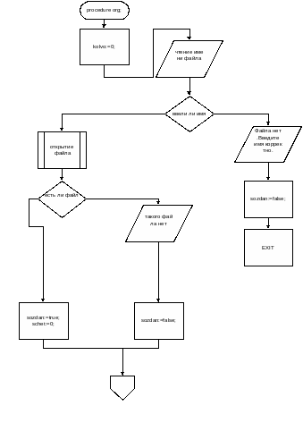 Структура алгоритма задачи для процедуры org;- считывание из файла и создание двунаправленного списка с упорядоченной структурой по полю fio (фамилия студента) по алфавиту. (рис. 2.6.1.) .
