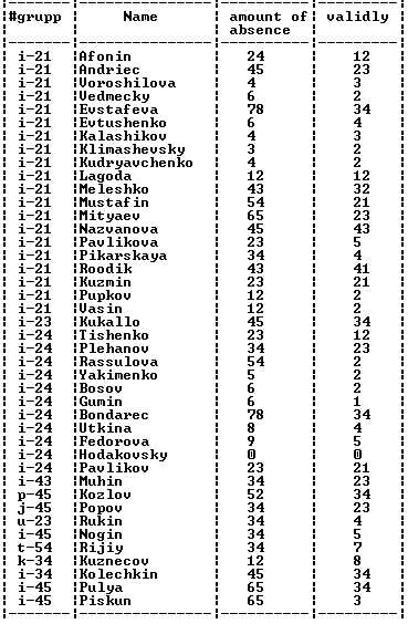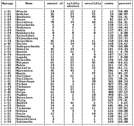 Размер входного файла зависит от количества символов в нем и для 44 элементов (студентов) составляет 2Кбайта. Размер выходного файла зависит от преобразований.