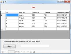 Вывести максимальную стоимость где название ЧП равно ‘Авария’.