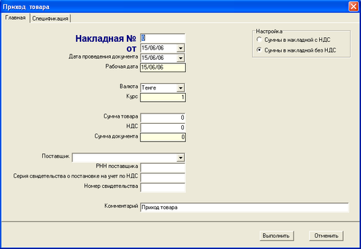 Операция прихода товара (рисунок 9) в торговом доме отличается от прихода в бухгалтерском учете.