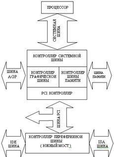 Он содержит: контроллер системной шины, посредством которого происходит взаимодействие с процессором; контроллер памяти, осуществляющий работу с системной памятью контроллер графической шины AGP (Accelerated Graphics Port), обеспечивающий взаимодействие с графической подсистемой (сегодня большинство чипсетов поддерживают интерфейсы 1х/2х/4х, скоро в перспективе 8-я скорость AGP); контроллер шины связи с южным мостом (PCI – шины в классическомпонимании).