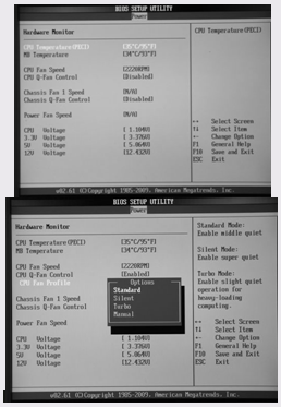 Системный мониторинг выполнен на вполне высоком уровне. В частности, плата отображает текущие значения температуры процессора и системы, отслеживает напряжения, скорости вращения всех вентиляторов, которые с помощью функции Q-Fan2 могут изменять скорость вращения в зависимости от температуры процессора и системы.