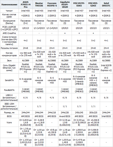 поддержка всех процессоров с сокетом Socket 1156 (включая соответствующие семейства Core i7, Core i5, Core i3 и Pentium), основанных на микроархитектуре Nehalem, при подключении к этим процессорам по шине DMI (с пропускной способностью ~2 ГБ/с);
