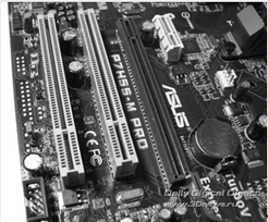 Начнем с того, что конфигурация слотов расширения ASUS P7H55-M Pro является наиболее оптимальной, и включает один PEG-слот, один слот PCI Express x1 и пару слотов PCI.