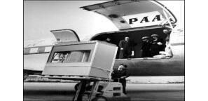 Ось, той самий IBM 305 RAMAC, випущений в 1956 році. Він був "легким" на той час – важив близько тони. Але для його транспортування доводилося використати цілий літак і спеціальний навантажувач. І це заради п'яти мегабайт даних!