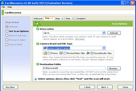Программа для восстановления мультимедийных файлов с фото и видеокамер и других устройств. Поддерживает самые разнообразные форматы карт памяти: SmartMedia, Secure Digital Card SD, Memory Stick, MicroDrive, xD Picture Card, и др. Впрочем, нельзя сказать, что CardRecovery специализируется только на графических и видеоформатах.