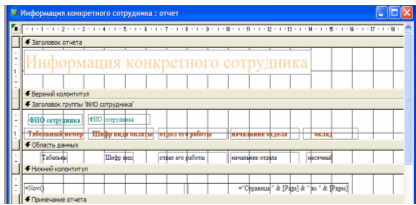 б) Отчет, содержащий полную информацию на конкретного сотрудника