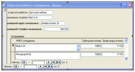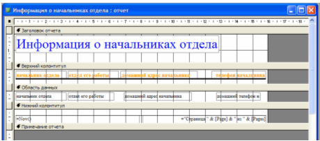 “Отдел его работы” с атрибутами: отдел его работы, начальник отдела, домашний адрес начальника, домашний телефон начальника.