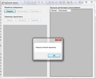 Результат работы программы при загрузке не файла изображения представлен на рисунке 3.8.
