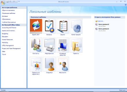 Также необходимо упомянуть, что в Access изначально имеются шаблоны типовых баз данных для автоматизации наиболее распространенных задач.