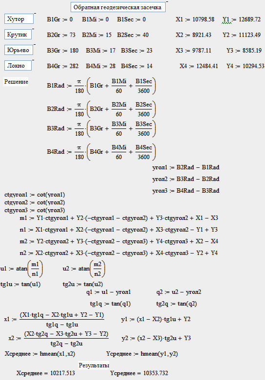 Таким образом, в данной курсовой работе было решено и оформлено 4 типовые геодезические и одна математическая задачи с помощью языка программирования Turbo Pascal, табличного процессора Excel и MathCad 14.