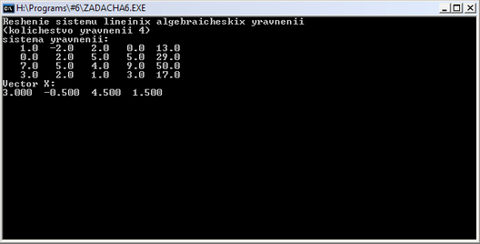 Writeln('Reshenie sistemu lineinix algebraicheskix yravnenii');
