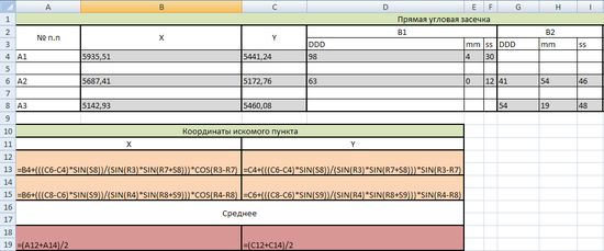 Рис. 4.4 Проверка в MS Excel в режиме отображения формул